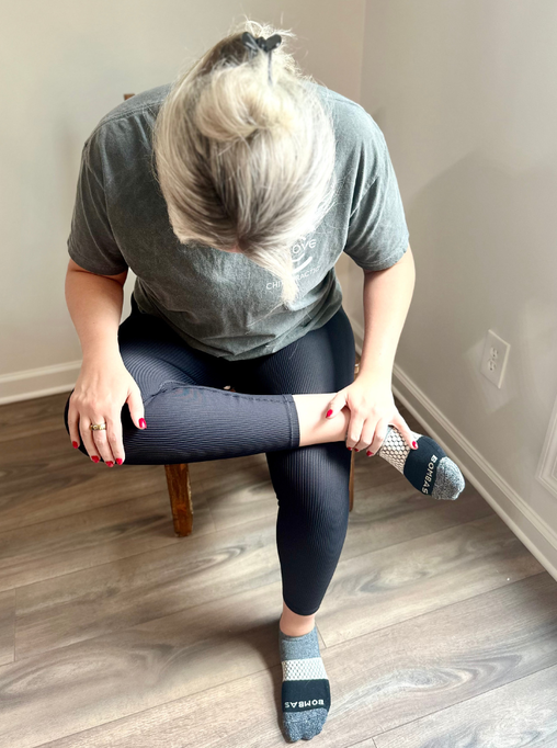 Instructions: Stand tall near a wall or sturdy surface for balance. Cross one ankle over the opposite knee, creating a "figure 4" shape. Slowly bend the supporting leg and sit your hips back, as if sitting in a chair, until you feel a stretch in your outer hip and buttock. Keep your chest lifted and back straight.